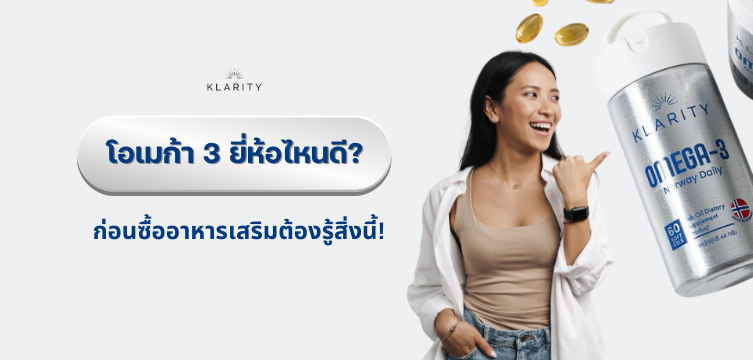 เลือกอาหารเสริมโอเมก้า 3 ยี่ห้อไหนดี? KLARITY (คลาริตี้) คือแบรนด์อาหารเสริมที่คุณมองหา! ผลิตอาหารเสริมโอเมก้า 3 ตามมาตรฐานระดับสากล โดยคิดค้นและผลิตในประเทศนอร์เวย์ ซึ่งเป็นประเทศที่มีมาตรฐานการผลิตอาหารเสริมที่เข้มงวดและมีคุณภาพสูง ทำให้อาหารเสริมของ KLARITY มีปริมาณโอเมก้า 3 สูง โดยเฉพาะ EPA และ DHA ซึ่งมีประโยชน์ต่อร่างกาย อาหารเสริมมาในรูปแบบซอฟท์เจลการดูดซึมทจึงดีเยี่ยม ทำให้ร่างกายได้รับประโยชน์จากโอเมก้า 3 ได้อย่างเต็มที่